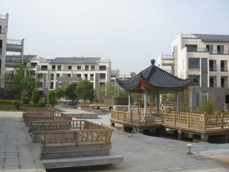 本項目具有現(xiàn)代中式徽派現(xiàn)代生態(tài)園林的特點,主要表現(xiàn)在:一是在營造現(xiàn)代、簡潔的植物空間的同時,又具有濃厚的中國氣息,如本小區(qū)的植物多選擇枝干修長、葉片飄逸、花小色淡的種類為主,如剛竹、垂柳、桂花、梅花、玉蘭、芭蕉、黃馨、菖蒲、鳶尾等,營造簡潔、明凈而極具中國文化意境的植物空間。二是以徽派文化內(nèi)涵為基本內(nèi)容,體現(xiàn)徽派文化的底蘊。尤其是以徽派的松、竹、梅、蘭、石為基本素材建園,求得園內(nèi)構(gòu)建與園外大環(huán)境的和諧統(tǒng)一,體現(xiàn)中國的傳統(tǒng)文化。如本小區(qū)中種植的五針?biāo)?、剛竹、臘梅、紅梅、廣玉蘭、紫玉蘭及布置的太湖石、千層石等。三是景觀色彩上采用樸素、典雅的顏色,穿插小量的亮色,通過古樸而不失現(xiàn)代的親和感覺,與徽派建筑外墻的灰、白二色相協(xié)調(diào),低調(diào)而內(nèi)斂,映襯在綠色的背景下顯得清新而淡雅。