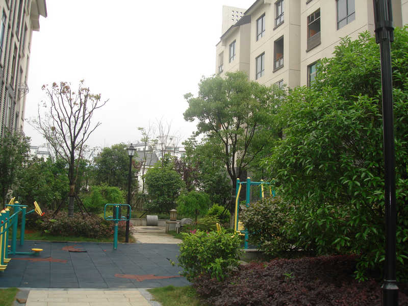 2 、充分考慮植物季相的變化。本工程植物造景注重季相的變化,考慮到四季枝葉的變化。根據(jù)植物的性狀,以豐富的植物種類形成春花爛漫、夏蔭濃郁、秋色絢麗、臘梅飛雪 的四季景觀。觀花植物貫穿于春夏秋冬。如春季的觀花植物有春鵑、山茶、茶梅、紅花繼木、紫玉蘭、黃玉蘭、樂昌含笑、櫻花、垂絲海棠、紅碧桃、紫荊、含笑、香泡等。夏季開花的植物有木槿、廣玉蘭、夾竹桃、豐花月季、紅花六月雪等。秋季開花的有金桂、黃山欒樹、夾竹桃、木芙蓉、紫薇、夏鵑、合歡、絲蘭、花石榴等。冬季觀花的植物有黃臘梅、紅梅、結(jié)香等。在本工程中,不僅有大量觀花的植物,還種植了很多觀葉的植物,如紅葉石楠、紅楓、烏桕、金絲垂柳。每當(dāng)紅葉石楠新葉長出的時候,枝頭上紅艷艷的,煞是好看!深秋季節(jié),葉子火紅的烏桕,紅楓很是醒目,大有“停車坐愛楓林晚,霜葉紅于二月花”的意境。深秋季節(jié)的欒樹,葉色變黃,果實紫紅,形似燈籠,十分美麗。冬季的無患子,滿樹金黃,猶如一棵“黃金樹”。還有芭蕉、八角金盤、曬金珊瑚等等,都是很好的觀葉植物。在本工程中,不僅有觀花和觀葉的植物,還根據(jù)居住區(qū)綠化種植的特點,種植了居民都喜歡的花果植物,如枇杷樹、香泡樹等等。給忙忙碌碌的人們創(chuàng)造“一年四季君須記,最是橙黃桔綠時”的意境。桂花是我地人們很喜歡的一個品種,因此,在各區(qū)塊、宅間種植了金桂、銀桂、四季桂等大小各種桂花180余株,每到金秋季節(jié),滿樹金黃,滿園飄香,進(jìn)入小區(qū)的人們,想必會心曠神怡吧!