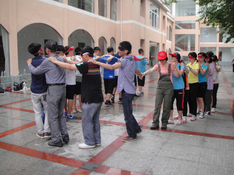 中午簡單用餐后,下午的“團(tuán)隊(duì)建設(shè)”主題拓展培訓(xùn)活動(dòng)正式拉開帷幕?;顒?dòng)開始前,教練將參加培訓(xùn)人員分成兩組,培訓(xùn)活動(dòng)第一個(gè)項(xiàng)目是傳遞激情——要求將一瓶礦泉水在不用手的情況下通過脖子從隊(duì)伍的一頭傳接到另外一頭。這激起了兩隊(duì)人員的好奇和各種疑惑,各種天馬行空的想法也紛紛產(chǎn)生并投入實(shí)際測試中,2隊(duì)的方法更具技巧性和高效性,最終輕松獲勝利。