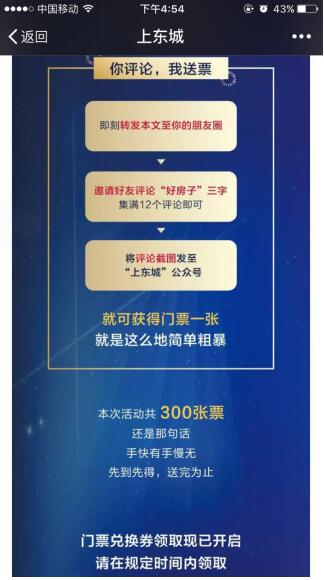關注【上東城】官微,轉發(fā)“搶門票新姿勢——好房子建亨造”文本至朋友圈邀請好友評論“好房子”三個字集滿12個評論、截圖至公眾號;搶票,就是這么簡單粗暴!