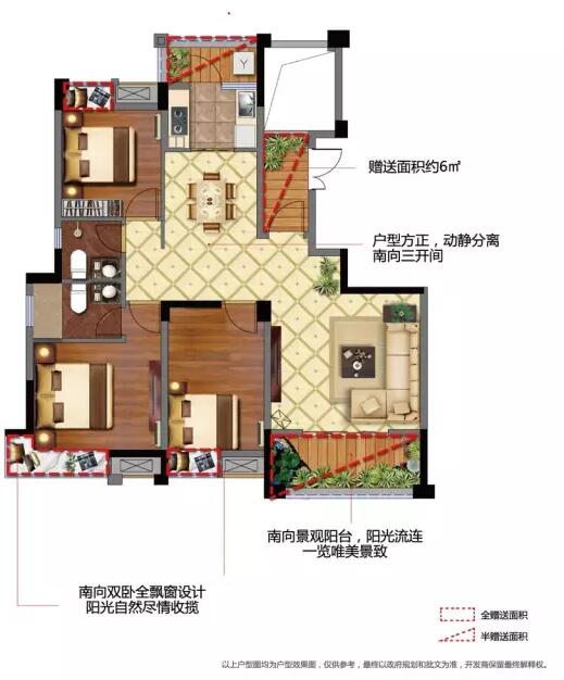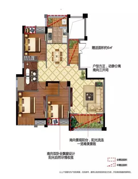 建筑面積115.11平方米,三房二廳二衛(wèi)