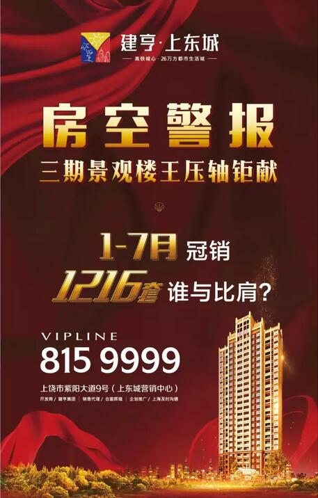 建亨·上東城1-7月狂銷1216套,榮登上饒市銷售套數(shù)和面積排行榜雙料冠軍,目前南區(qū)全面售罄,三期新品所推房源也所剩不多,此次推出景觀樓王14號(hào)樓,主力戶型為115平米和134平米三房,房源不多,有興趣的朋友們要抓緊來(lái)看了!
